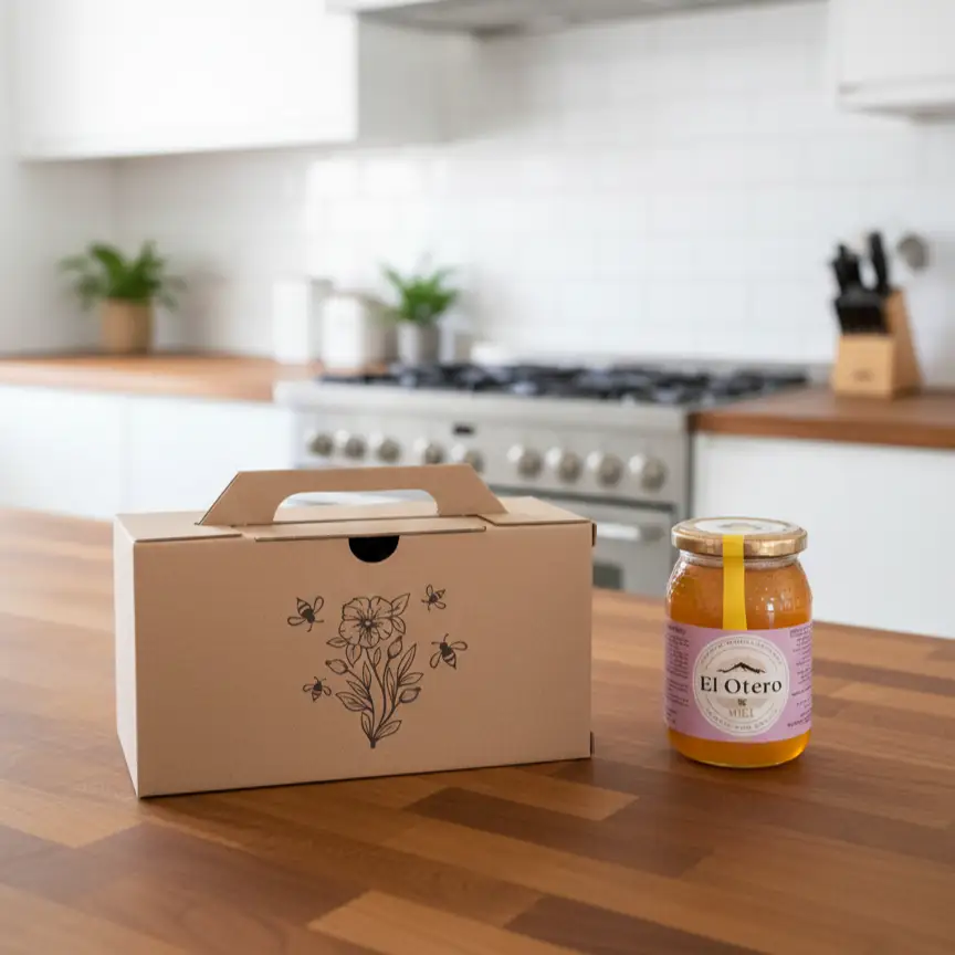 Producto limitado. 3 tarros de 500grs de 3 tipos diferente de miel , guardados en una preciosa caja de cartón con unas Dimensión: 230 mm x 73 mm x 73 mm.